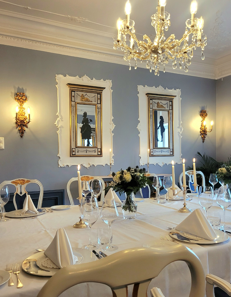 Før smakingen får du bli med på en historisk vandring rundt hotellet, der vår guide forteller om stedets rike historie, kunst og tradisjoner.